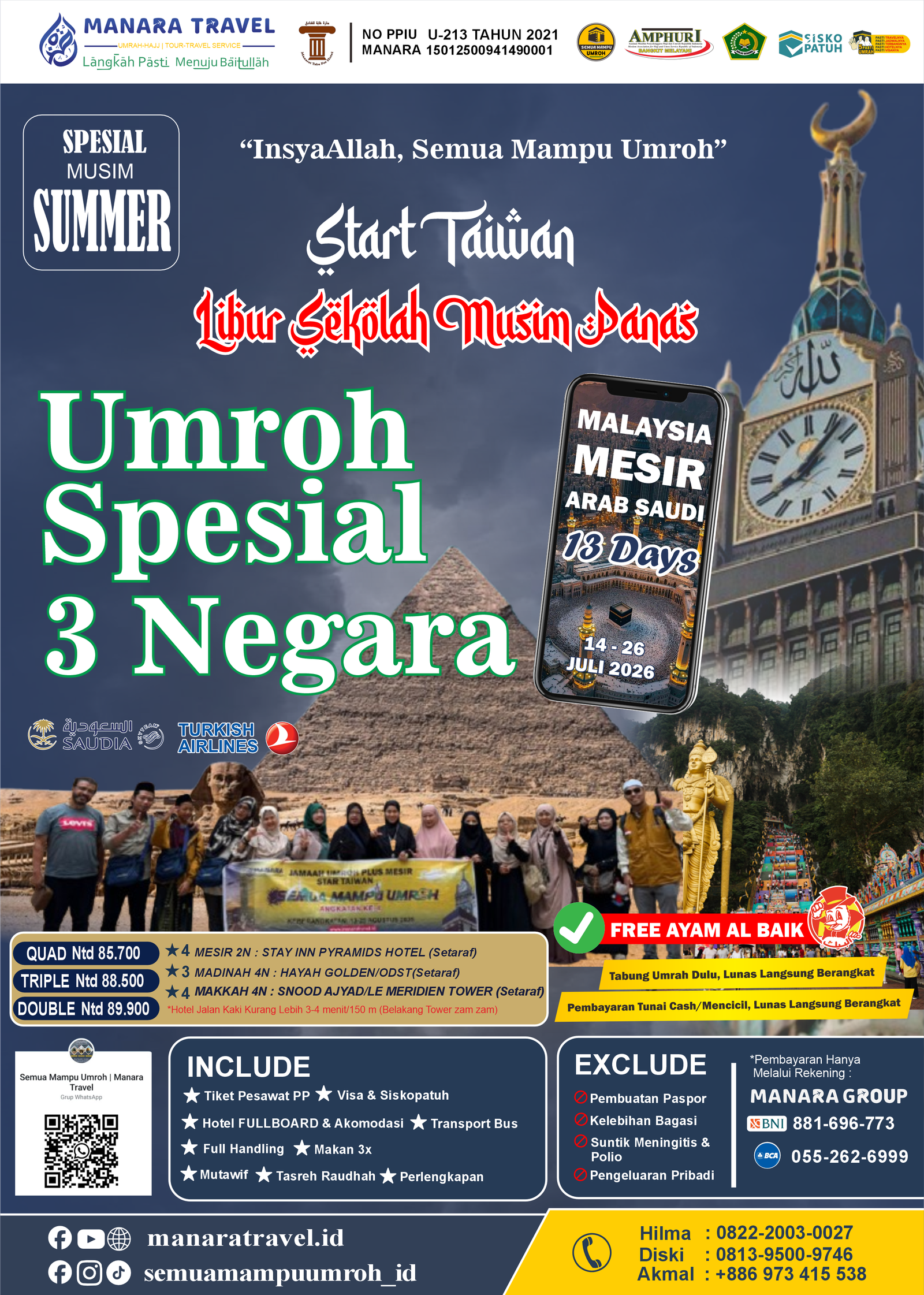 Umroh dengan Manara Alharamain Wisata menawarkan pengalaman tak terlupakan bagi umat Islam. Kunjungan ke Kota Suci Mekah dan Madinah menjadi momen spiritual yang berharga. Paket ini menyediakan perjalanan dan pengalaman spiritual dengan fasilitas lengkap dan harga terjangkau. Dengan dukungan tim berpengalaman, jamaah dapat menjalani ibadah dengan nyaman dan lancar.